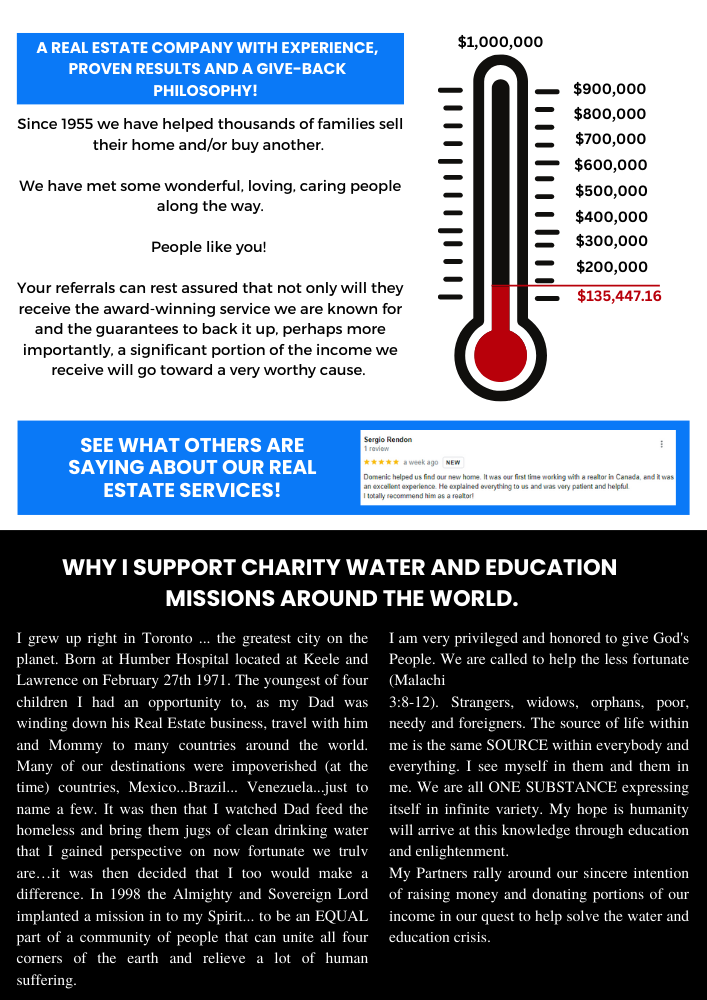 Over the last two decades of helping thousands of families sell their home and/or buy another, we have met some wonderful, loving, caring people. People like you! So your referrals, those you know considering a move, that we help – you can rest assured that not only will they get the award winning service we are known for and the guarantee to back it up, but that a solid portion of the income we receive from the transaction will go toward a very worthy cause.